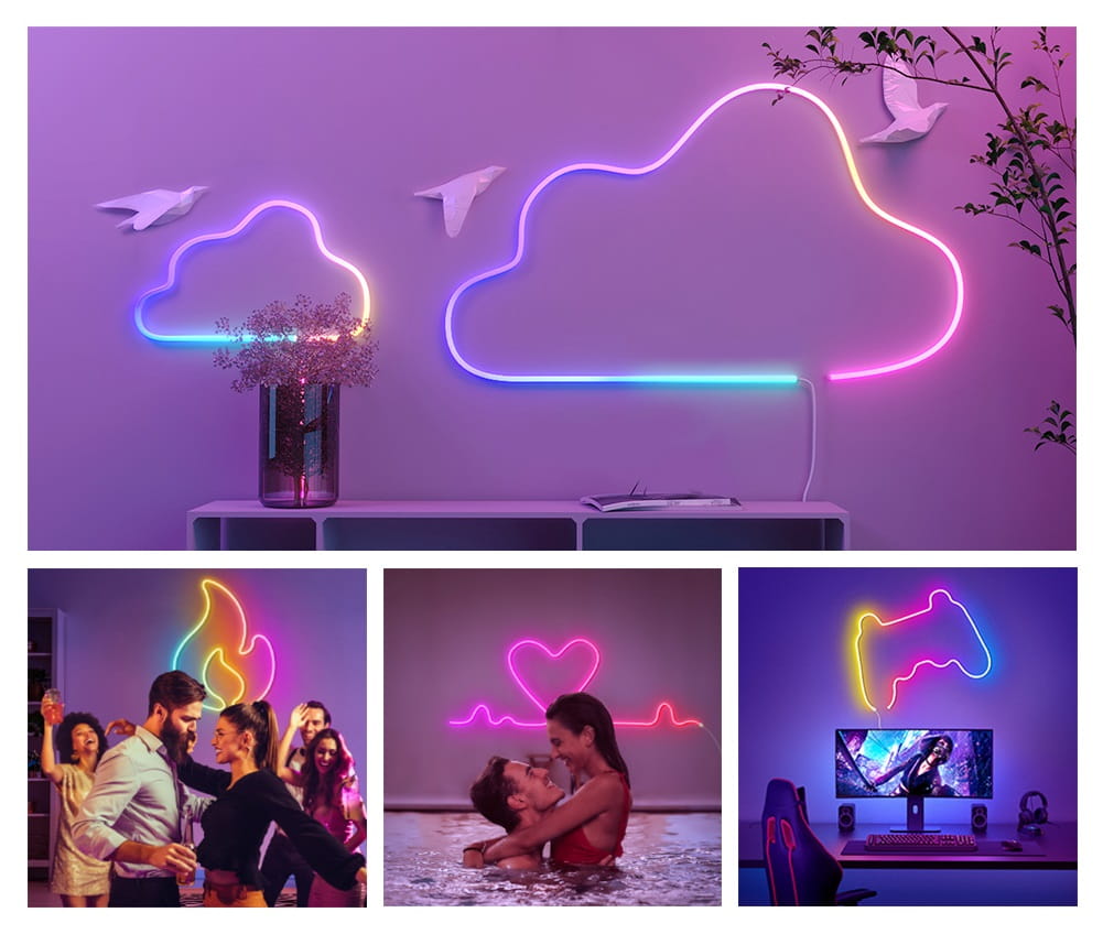 Neony typu FLEX są bardzo giętkie, dzięki czemu możemy z nich tworzyć przeróżne kształty.