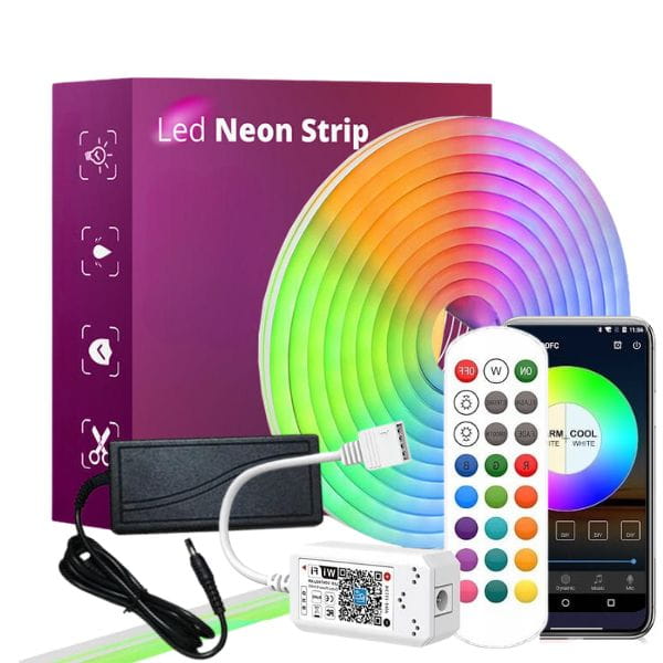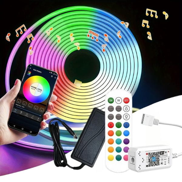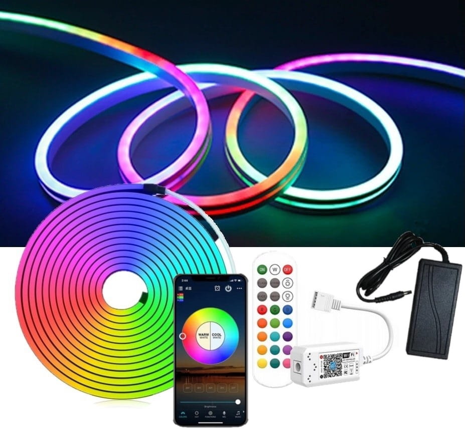 Zestaw 5m Taśma Led NEON FLEX RGB ze sterownikiem WIFI, pilotem RADIOWYM, Aplikacją na telefon do sterowania mobilnego