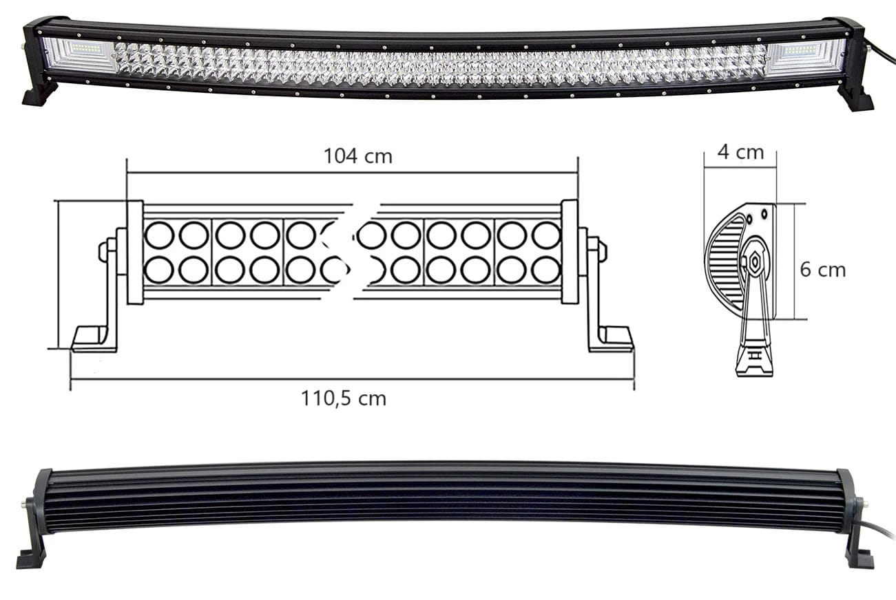 Lampa ma długość 104 cm, co umożliwia łatwą instalację na różnych pojazdach, a jej wytrzymała konstrukcja jest odporna na wstrząsy i wibracje typowe dla trudnych warunków terenowych. Obudowa lampy jest wodoodporna i pyłoszczelna, co gwarantuje jej niezawodność i długotrwałe użytkowanie nawet w najbardziej wymagających środowiskach. LED Bar jest wyposażony w zaawansowany system rozpraszania ciepła, który zapewnia długą żywotność diod LED i stabilność pracy.