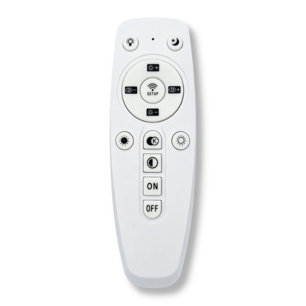 W zestawie znajduje się pilot radiowy, który umożliwia wygodne sterowanie lampą: