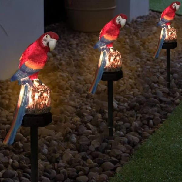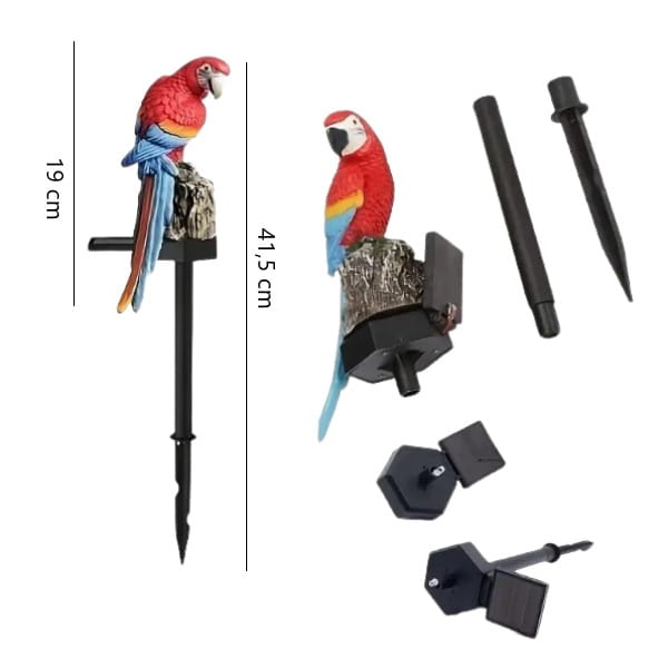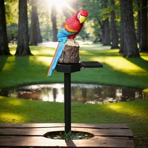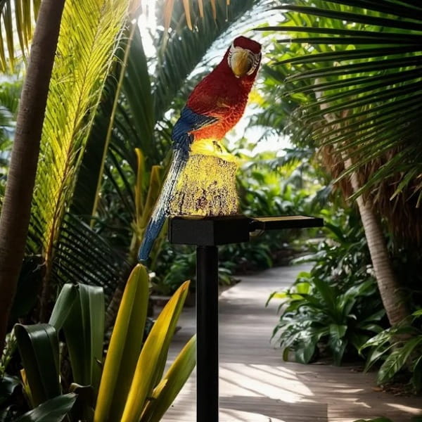 Ozdobna Papuga Solarna do ogrodu CZERWONA